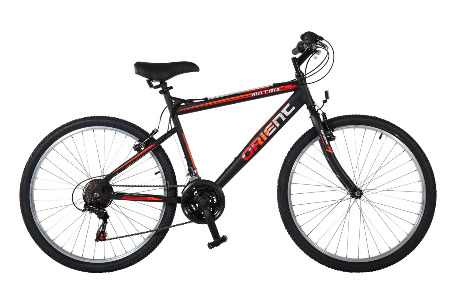Ποδήλατο 26″ Mountain Bike Matrix 21 ταχυτήτων σε μαύρο χρώμα. Το Orient Matrix είναι ένα ποδήλατο το οποίο διαθέτει 26 ιντσών τροχούς που του δίνουν την δυνατότητα να κινηθεί με αξιοπρέπεια σε όλα τα τα οδοστρώματα.Μεγεθολόγιο ποδηλάτων