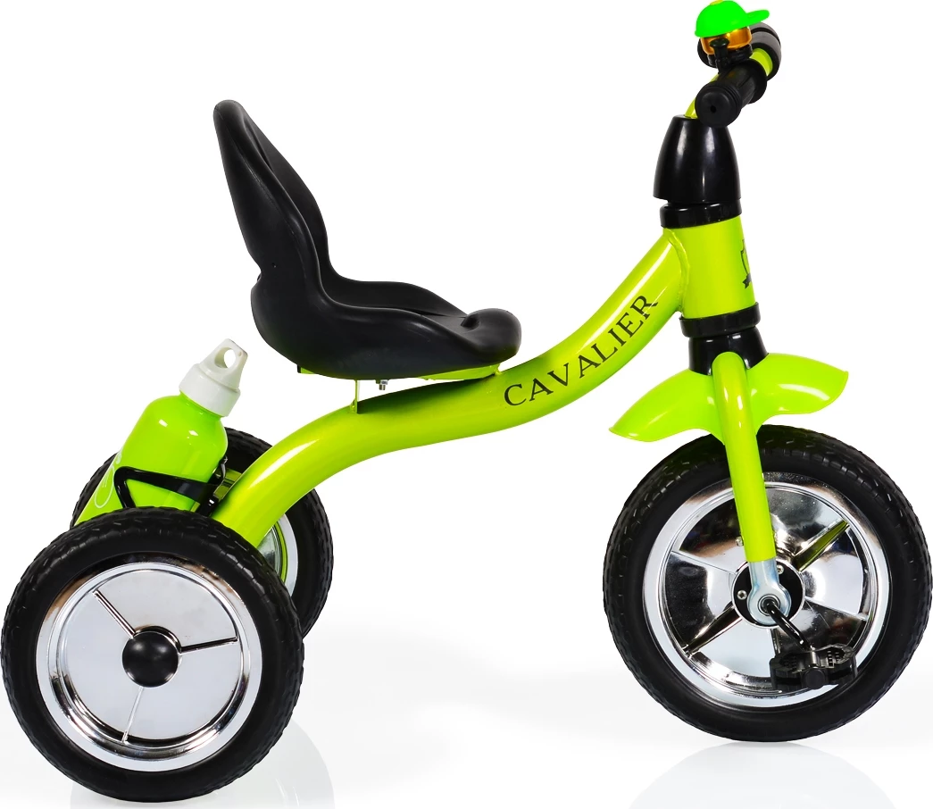 Ποδήλατο Τρίκυκλο Cavalier Πράσινο Κατάλληλο για παιδιά από 2 ετών για μεγαλόσωμα παιδιά (από 3 ετών για όλα) μέχρι 5 ετών ή μέχρι 20 κιλά. Στιβαρός σκελετός. Ρύθμιση σέλας. Με κουδούνι και ποτηροθήκη. Απόσταση σέλας από το έδαφος : 33cm
