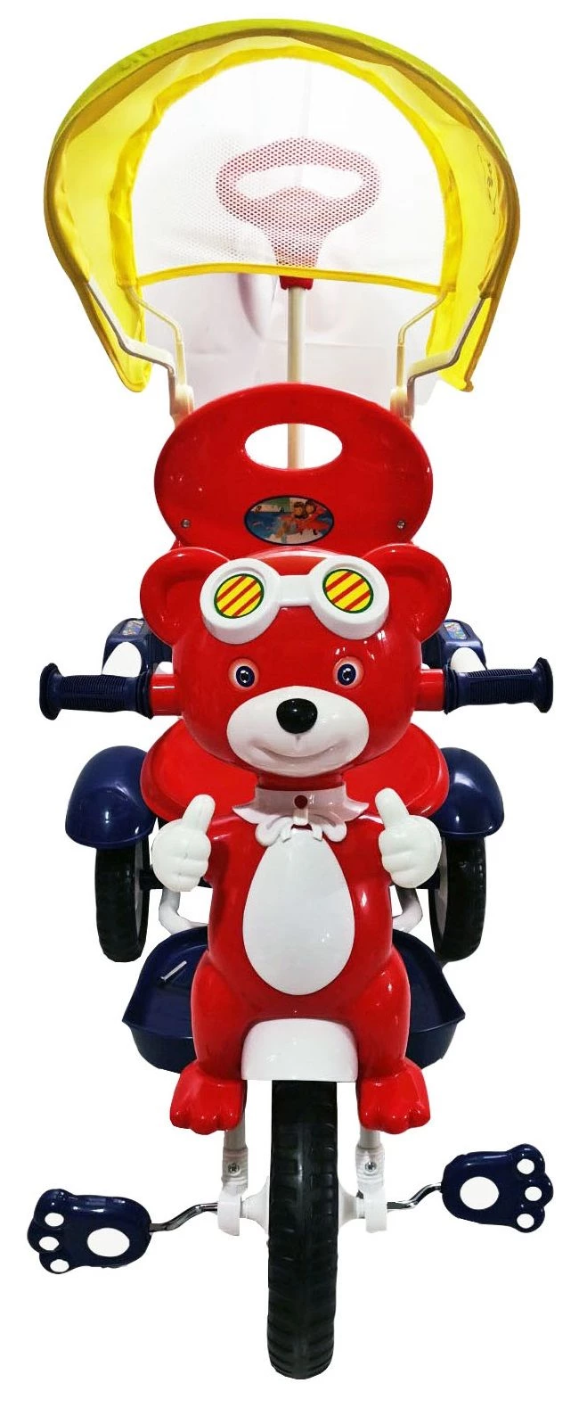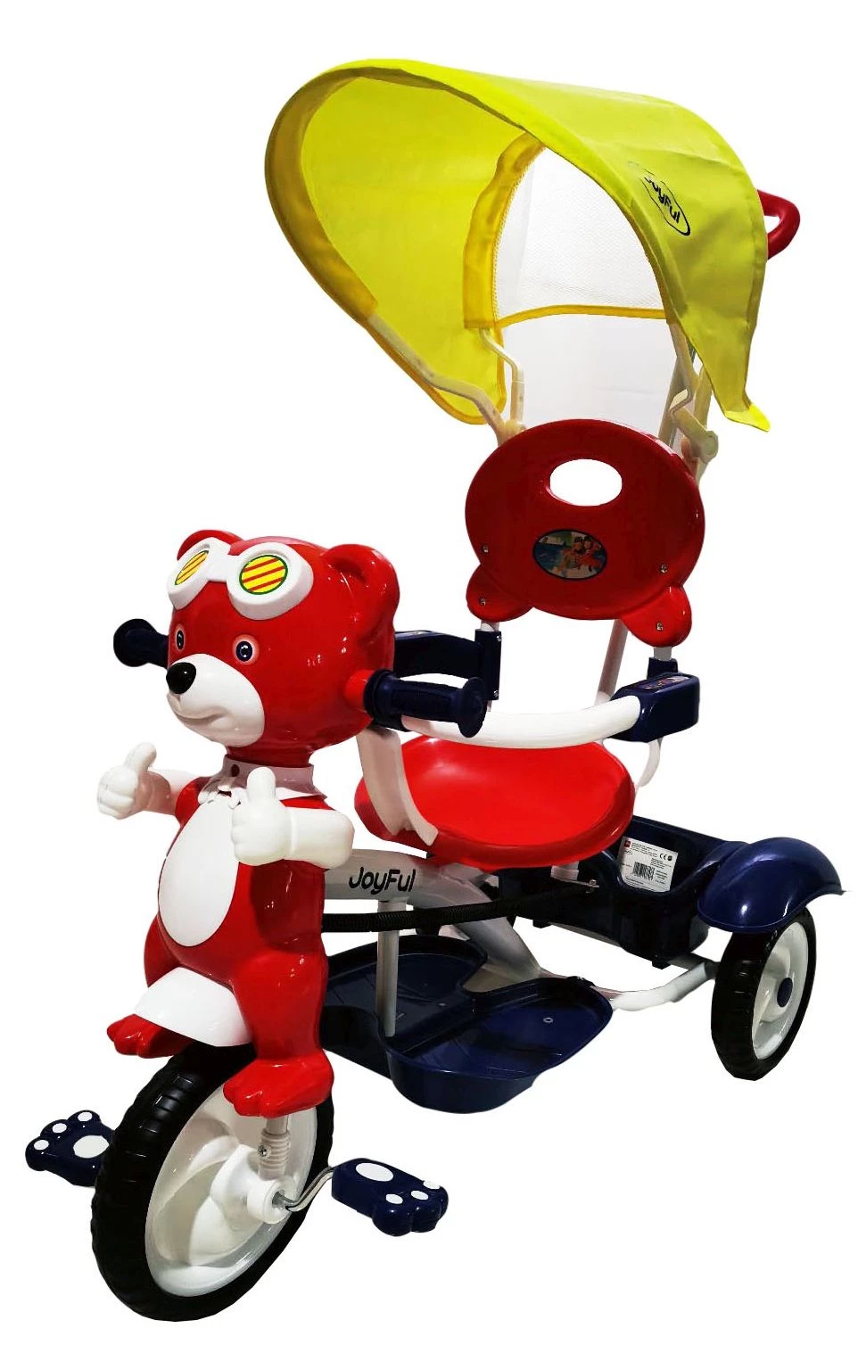 Παιδικο Τρικυκλο Ποδηλατο Joyful Κόκκινο Αρκουδάκι Πιλότος Με Τέντα Και Καλάθι