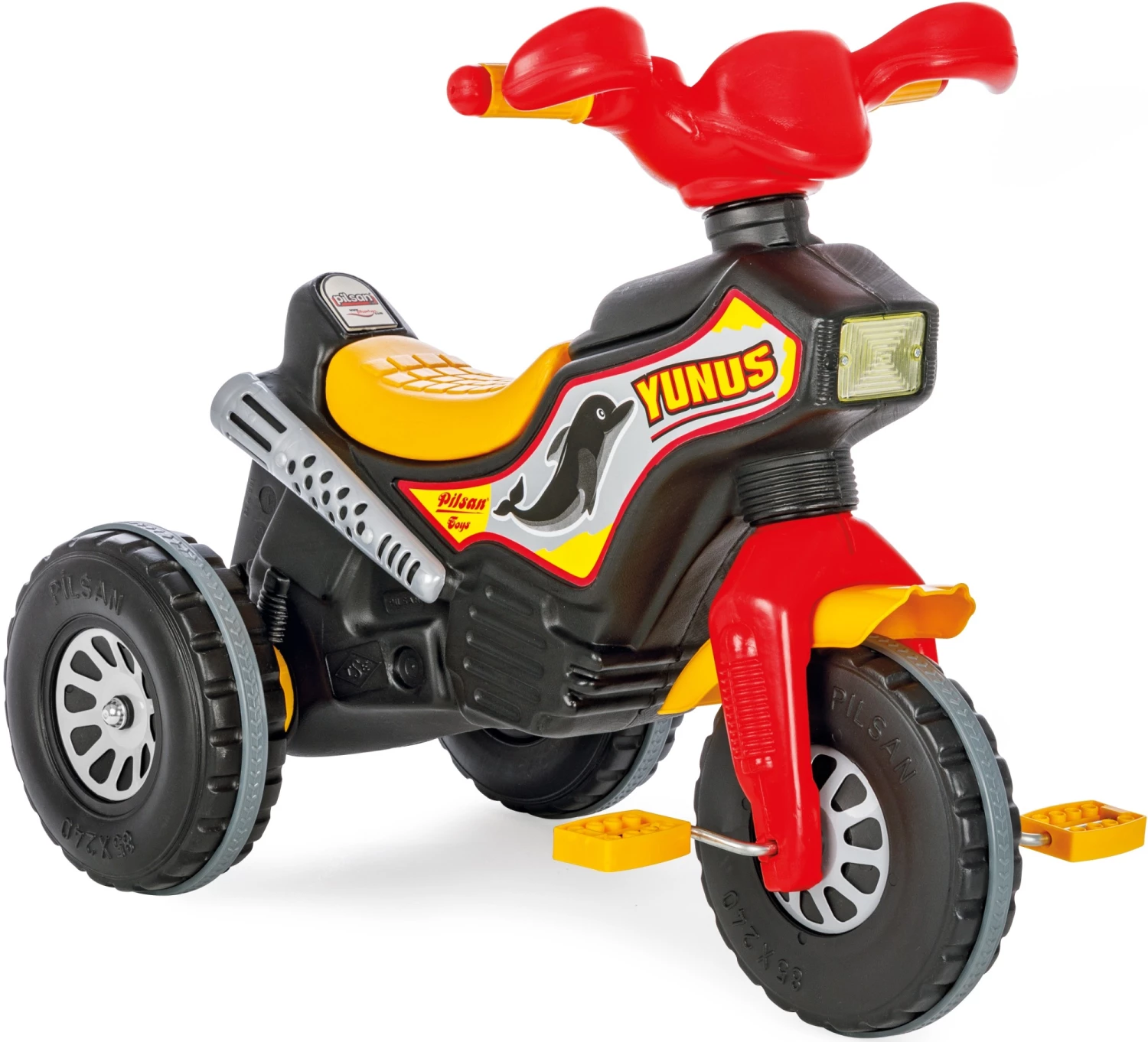Pilsan Ποδoκίνητο Τρίκυκλο Black Flipper Κομψή εμφάνιση και εργονομικός σχεδιασμός Ανθεκτική κατασκευή Μέγιστο βάρος παιδιού:35 κιλά Διαστάσεις:43 x 75 x 60 εκ Ύψος καθίσματος από το έδαφος:35 εκ Ύψος τιμονιού από το έδαφος:55 εκ