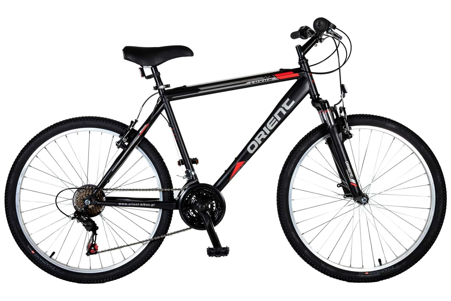 Ανδρικό ποδήλατο Orient Luxus 26″ 21sp. σε μαύρο χρώμα (2022) Σκελετός: Hi-ten Φρένα: Promax v-brakes TX-120 Ανάρτηση πιρούνι: 45mm Ντεραγιέ: Shimano RD TZ-50 Τροχοί: Mach1 alloy Χειριστήρια: Shimano SLRS-35/7Μεγεθολόγιο ποδηλάτων