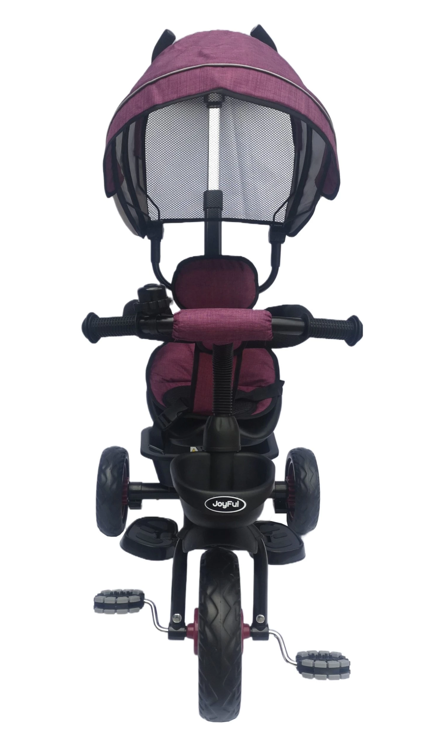 Ποδήλατο Τρίκυκλο Joyful Eva Wheel Purple Τρίκυκλο ποδηλατάκι για παιδιά με καλαθάκι μπρος-πίσω και μπαστούνι καθοδήγησης. Μαλακό μαξιλάρι καθίσματος και πλάτης που αναπνέει Ρυθμιζόμενες ζώνες Υποπόδιο