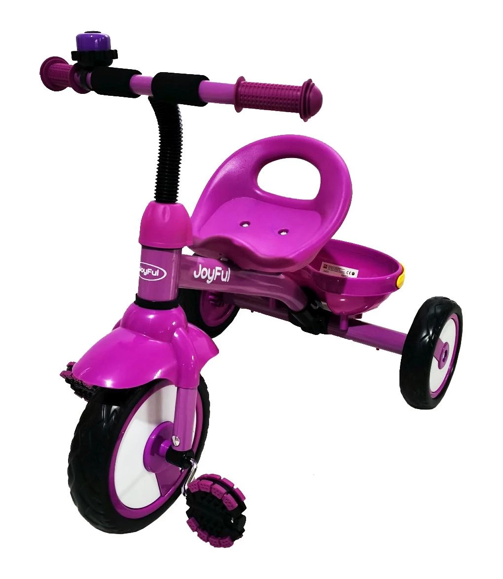 Ποδήλατο Τρίκυκλο Joyful Μωβ Με Καλάθι Και Κόρνα Τρίκυκλο ποδήλατο με μεγάλη σέλα, καλαθάκι απο πλαστικό και κόρνα. Διαστάσεις: 73 x 51 x 56 εκ.