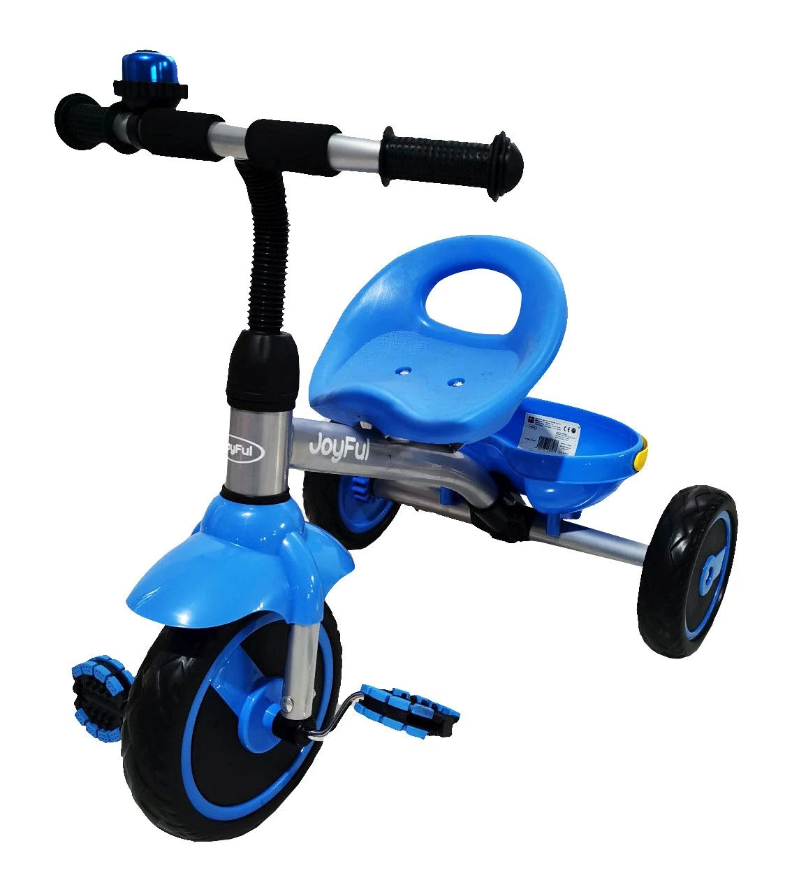 Ποδήλατο Τρίκυκλο Joyful Μπλε Με Καλάθι Και Κόρνα Τρίκυκλο ποδήλατο με μεγάλη σέλα, καλαθάκι απο πλαστικό και κόρνα. Διαστάσεις: 73 x 51 x 56 εκ.