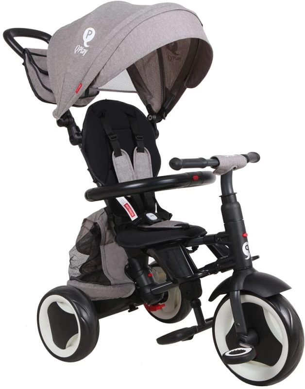 Ποδήλατο Τρίκυκλο Q Play Rito Plus Eva 3 In 1 Grey Deluxe Αναδιπλούμενο Με Τέντα, Τσάντα, Υποπόδιο
